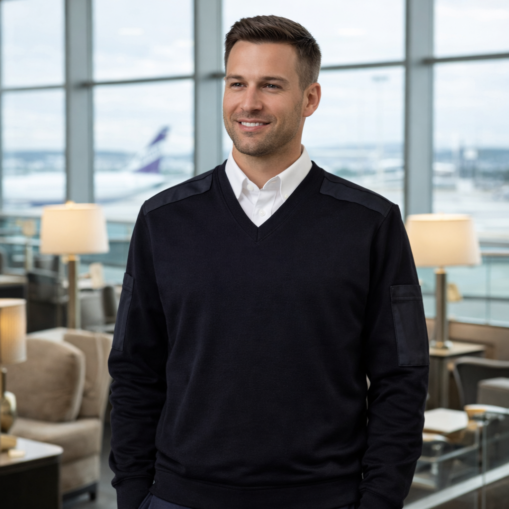This NATO V-neck pullover delivers a professional, uniform-ready look with built-in functionality for demanding work environments. Designed with shoulder straps for epaulettes and practical sleeve pockets, it supports streamlined crew identification and on-the-go accessibility.